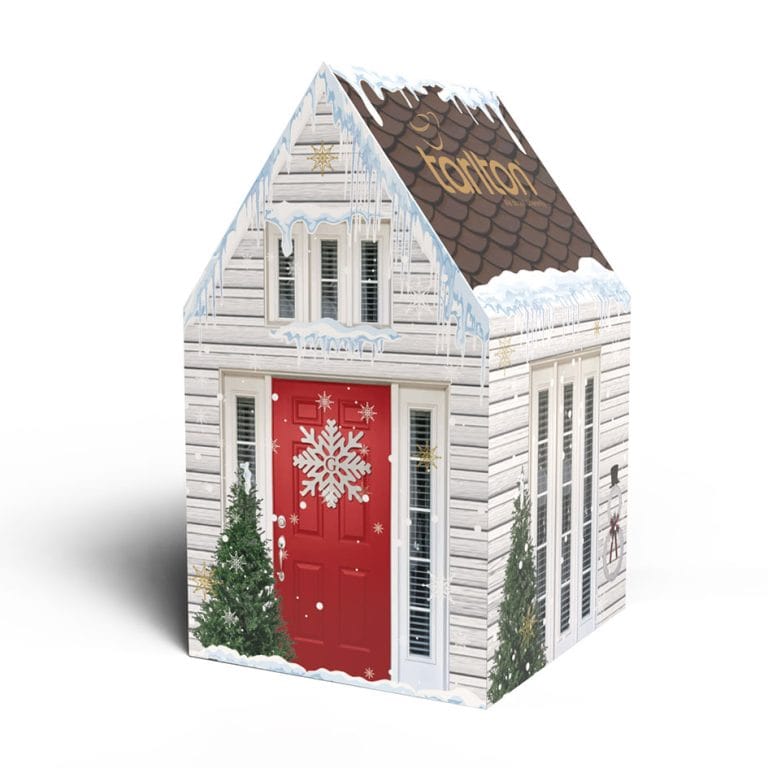 Elegant and wintry, this white house-shaped tin holds Tarlton’s finest Ceylon tea. A beautiful keepsake that adds a touch of sophistication and holiday spirit.